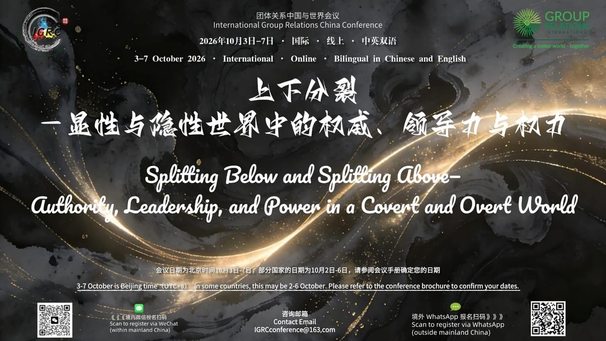 此次团体关系会议,正是基于当下这个特定的历史时刻对上述问题展开研究。当我们在此会议中一起工作时,或许能发现:那永恒的道之意识,正通过我们的集体无意识显现自身。唯有清醒认知自身在宏大系统中所处的位置,觉察那些环绕着我们的系统性力量,方能指引我们在充满不确定性的时代中,如何真正把握属于自己的权威。